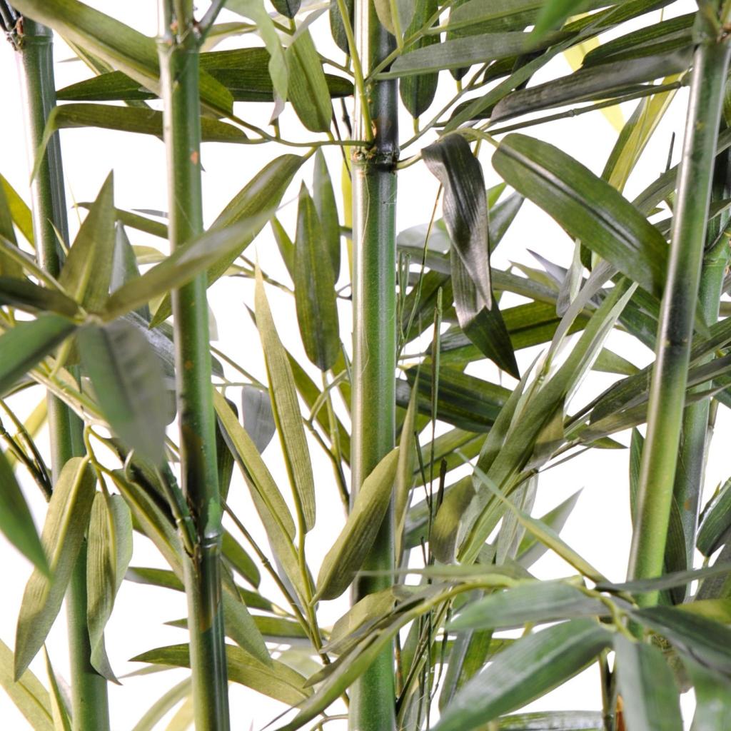 Envie d'un brin de nature sans les contraintes d'entretien ? Le Bambou NEW Green est la parfaite incarnation d'élégance et de facilité, alliant l'aspect authentique des véritables cannes de bambou au pratique. Chaque détail a été pensé pour embellir votre espace avec un réalisme bluffant. Les cannes vertes, choisies pour leur aspect naturel, sont complétées par un feuillage en TERGAL, une matière reconnue pour sa durabilité et sa capacité à imiter à la perfection les feuilles de bambou.