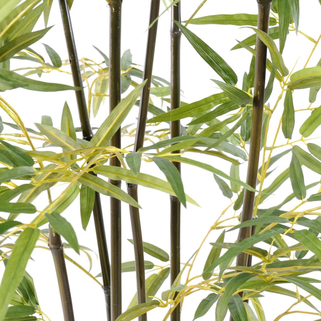 Le bambou artificiel Vert S, d'une majestueuse hauteur de 290 cm et d'une ampleur de 130 cm, se pare d'un feuillage luxuriant et d'un tronc en bois, véhiculant une beauté naturelle et intemporelle. Conçu en TERGAL de haute qualité pour un rendu saisissant de réalisme, cet arbre embellira votre espace de vie en y instillant une atmosphère de sérénité, sans demander le moindre entretien.